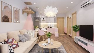 Với thiết kế tông màu hồng mang đậm phong cách dễ thương và nhẹ nhàng, bạn sẽ có cảm giác thỏa mái khi ở trong căn hộ này. BTHOME thiết kế nội thất nhà chung…